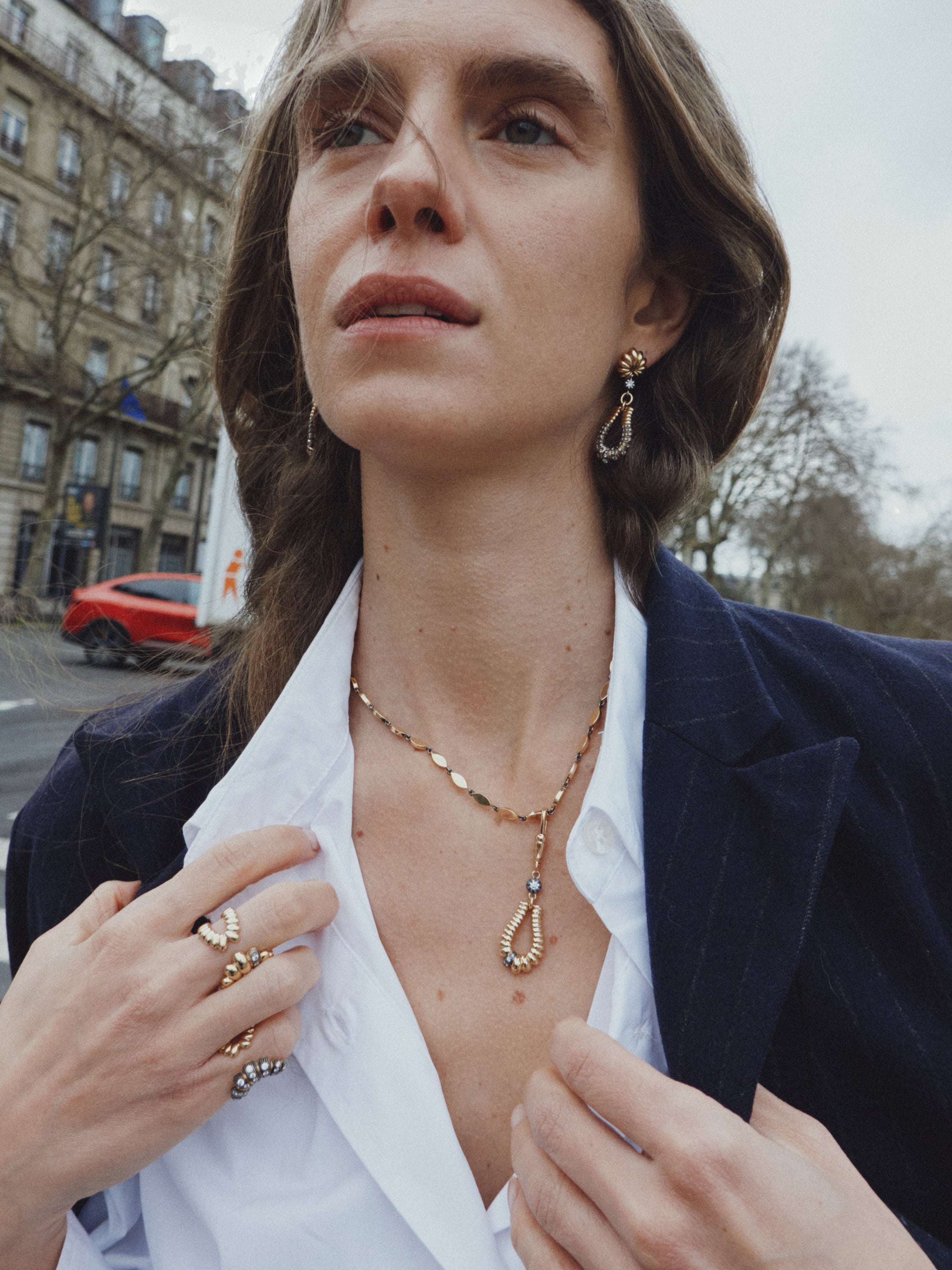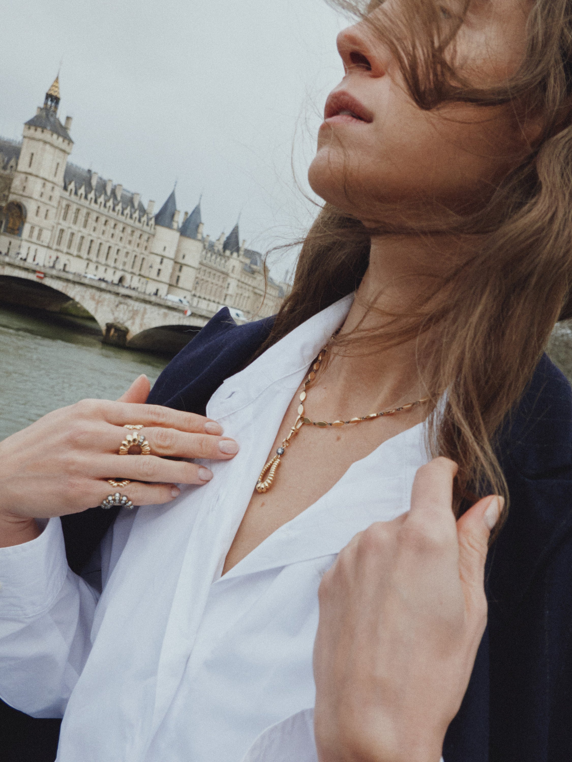 From the intimacy of her home and the serene streets of Paris, Dolores presents pieces from our latest collection in a quietly intimate series. Between natural light, lived-in spaces, and gentle walks, each jewel becomes part of her daily ritual. An intimate encounter between woman, jewels and city.